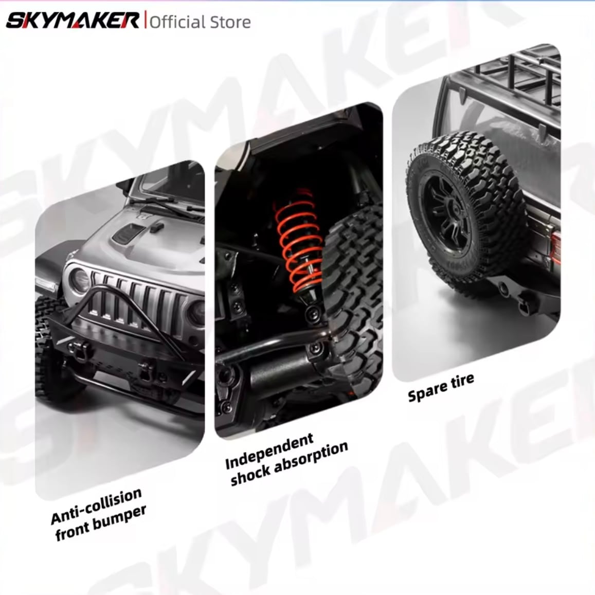 本体に加え、CNC精密加工の金属製ドライブシャフトと高性能油圧ショックアブソーバーを標準装備。走破性・耐久性・操作性が格段に向上したプレミアムモデルです。