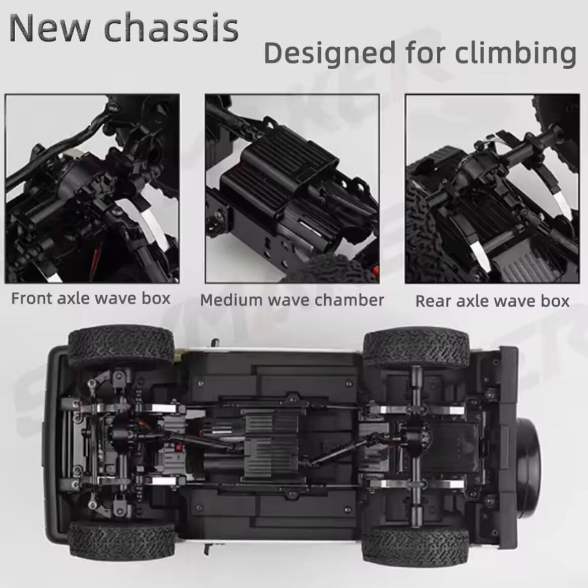 WPL C74-1は、実車さながらのサスペンションとトルクフルな4WDシステムを搭載。岩場や傾斜、砂利道など、あらゆる地形を力強く走破します。完全比例制御により、繊細なアクセルワークやステアリング操作も思いのまま。
